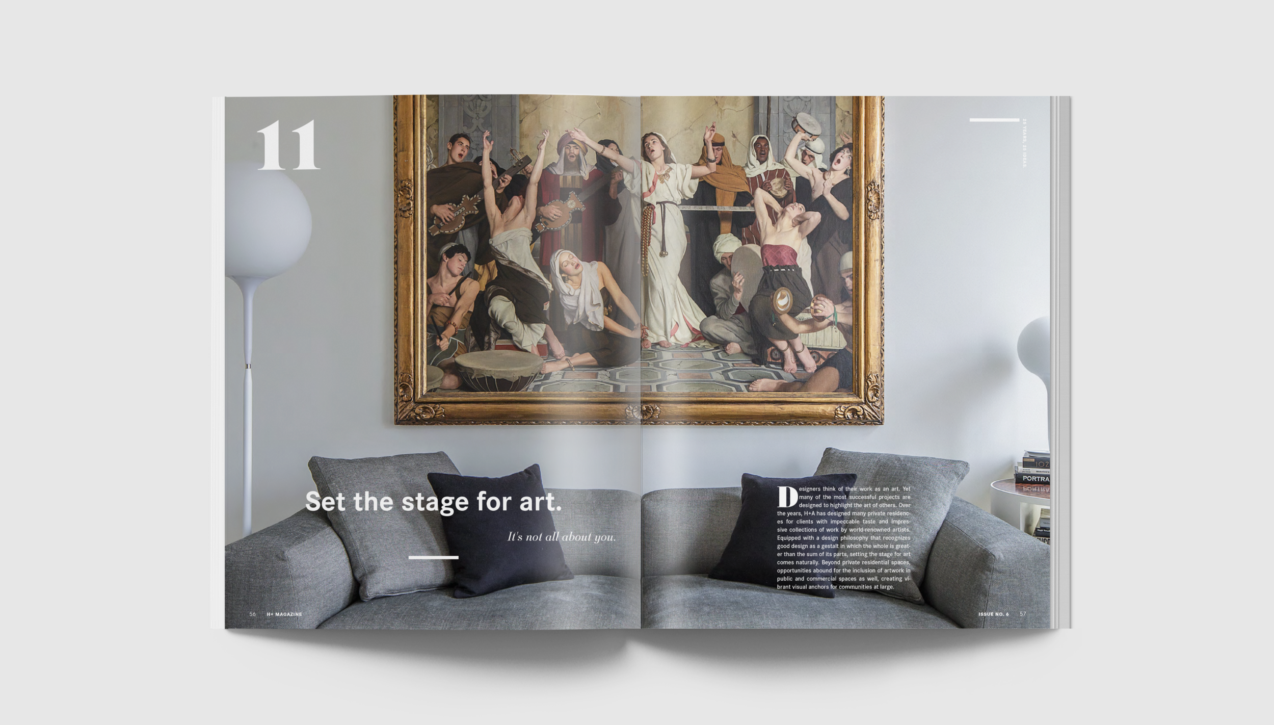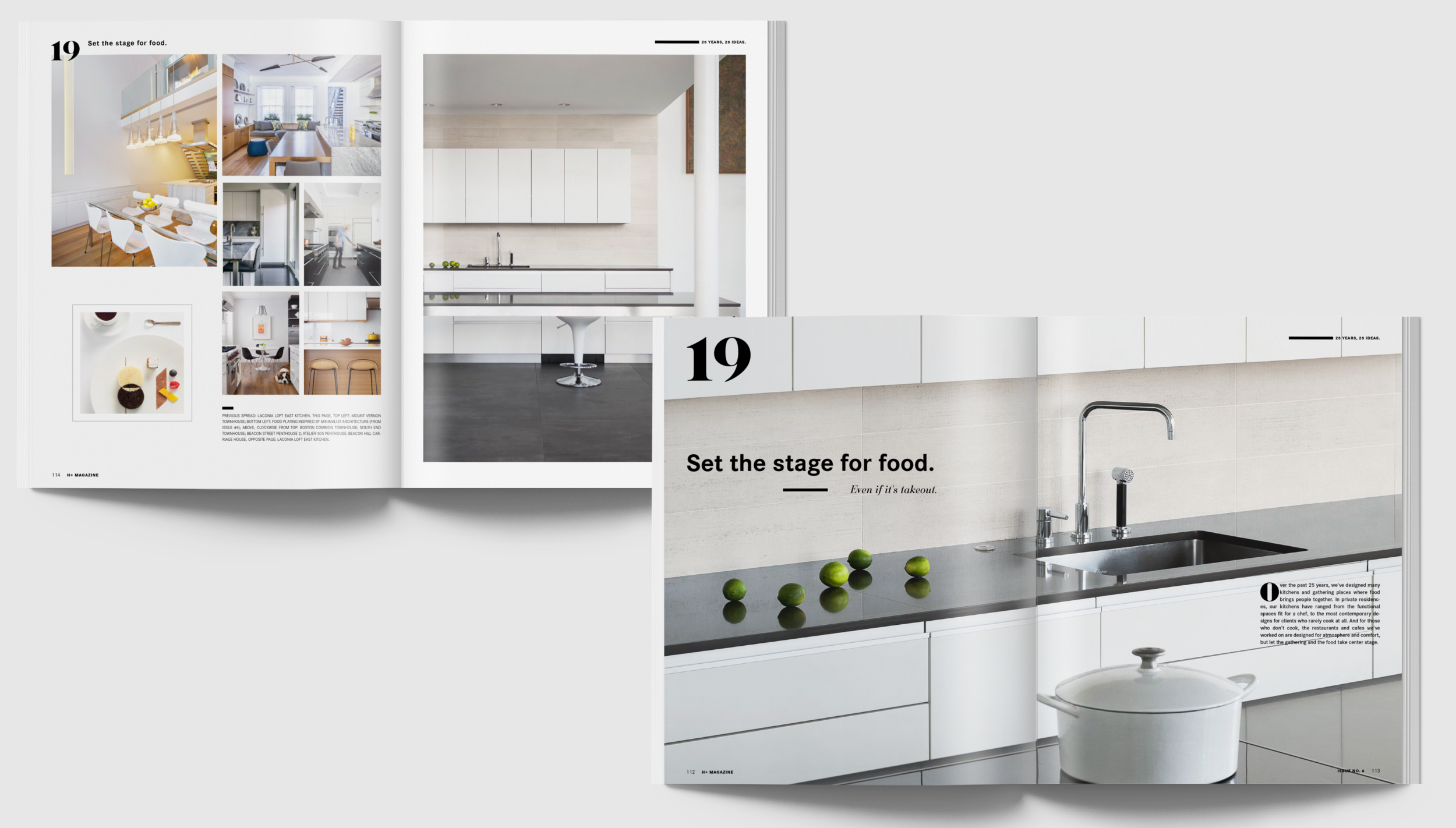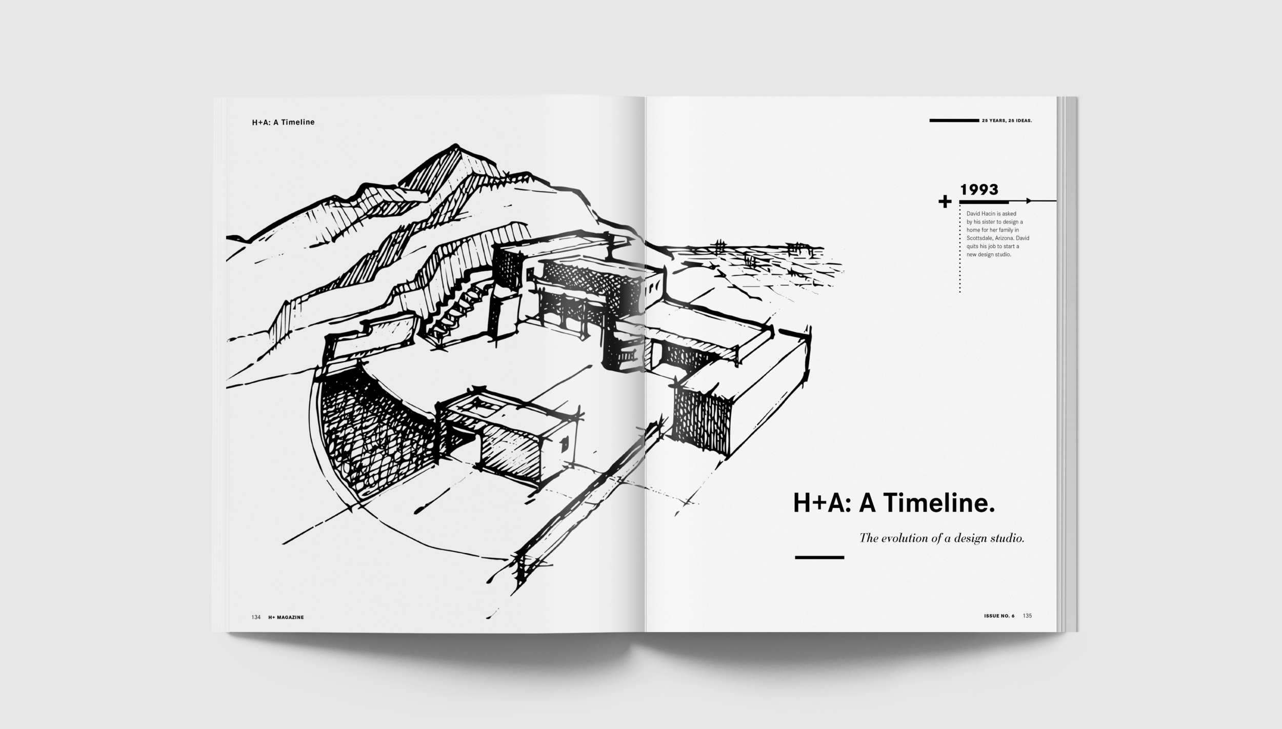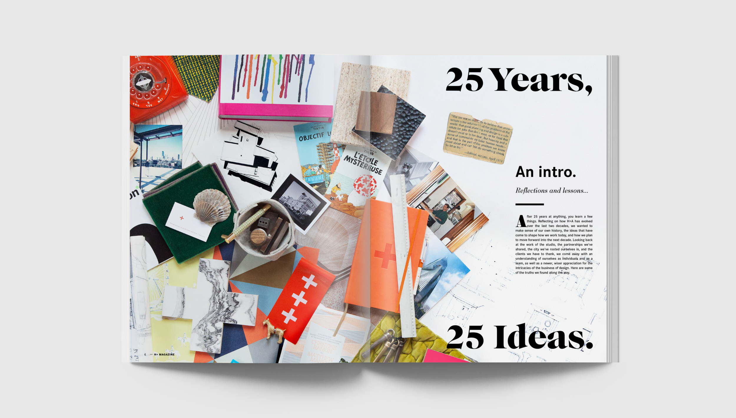 This issue of H+ Magazine is titled, The 25 Years Edition, and is a special edition of the publication celebrating H+A’s 25th anniversary with a look at 25 lessons and ideas to pass along and share with other design professionals. From working with a concept, to saying ‘Thank you’, these 25 ideas run the gamut from personal to professional. Printed both as a magazine and a hard cover book, the issue also marks five years of publishing H+ Magazine. Special photography for this issue included the cover image and the main feature image.